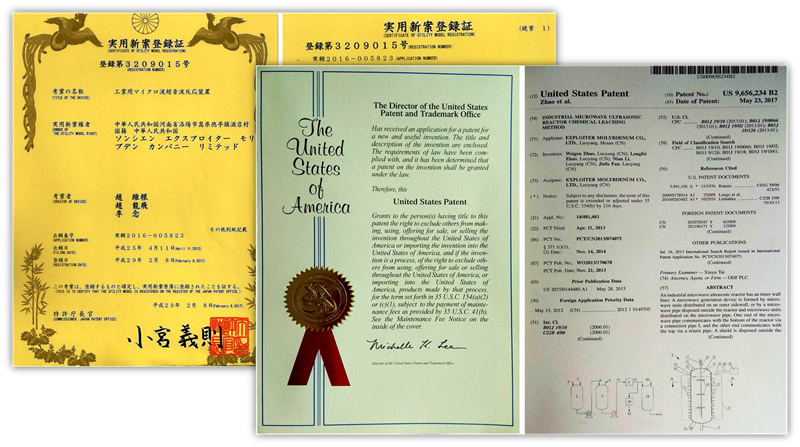 自成立以來,公司完成了高純二硫化鉬產品升級技術研發(fā)、納米二硫化鉬制備項目、納米三氧化鉬制備項目、真空分解二硫化鉬生產金屬鉬粉項目、低品位鎢精礦制備鎢鉬鐵合金項目、錸的綜合回收利用項目等一系列重大科研項目,累計完成科技成果轉化20余項,先后獲得國內授權專利30余項,其中,發(fā)明專利16項,實用新型專利22項;國外授權專利2項,包括美國授權發(fā)明專利1項、日本授權實用新型專利1項。部分專利如下:
